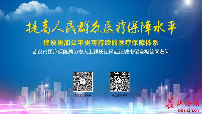 千方百计保基本,重点关注特殊人群医疗保障,坚持尽力而为、量力而行,努力建成更加公平、更可持续的医疗保障体系是国家组建医疗保障局的重要目标。武汉市医疗保障局入驻长江网武汉城市留言板,并启动“我为医保献一策”活动,邀请广大市民立足发展阶段,为完善医保政策、确保医保制度长期可持续献计献策。医疗保障的问题迅速成为广大市民关注的热点。为此,市医疗保障局党组书记、局长郑先平将率医保局待遇保障组、医药管理组、医疗价格组、基金监管组、医保中心负责人在线倾听市民建议,共同为网友提供权威专业的解答。网友可就医保待遇水平、报销结算难点、更多救命药进医保等切身保障问题提问,也可就打击欺诈骗保专项行动、医保精准扶贫、医保支付方式改革等提建议。