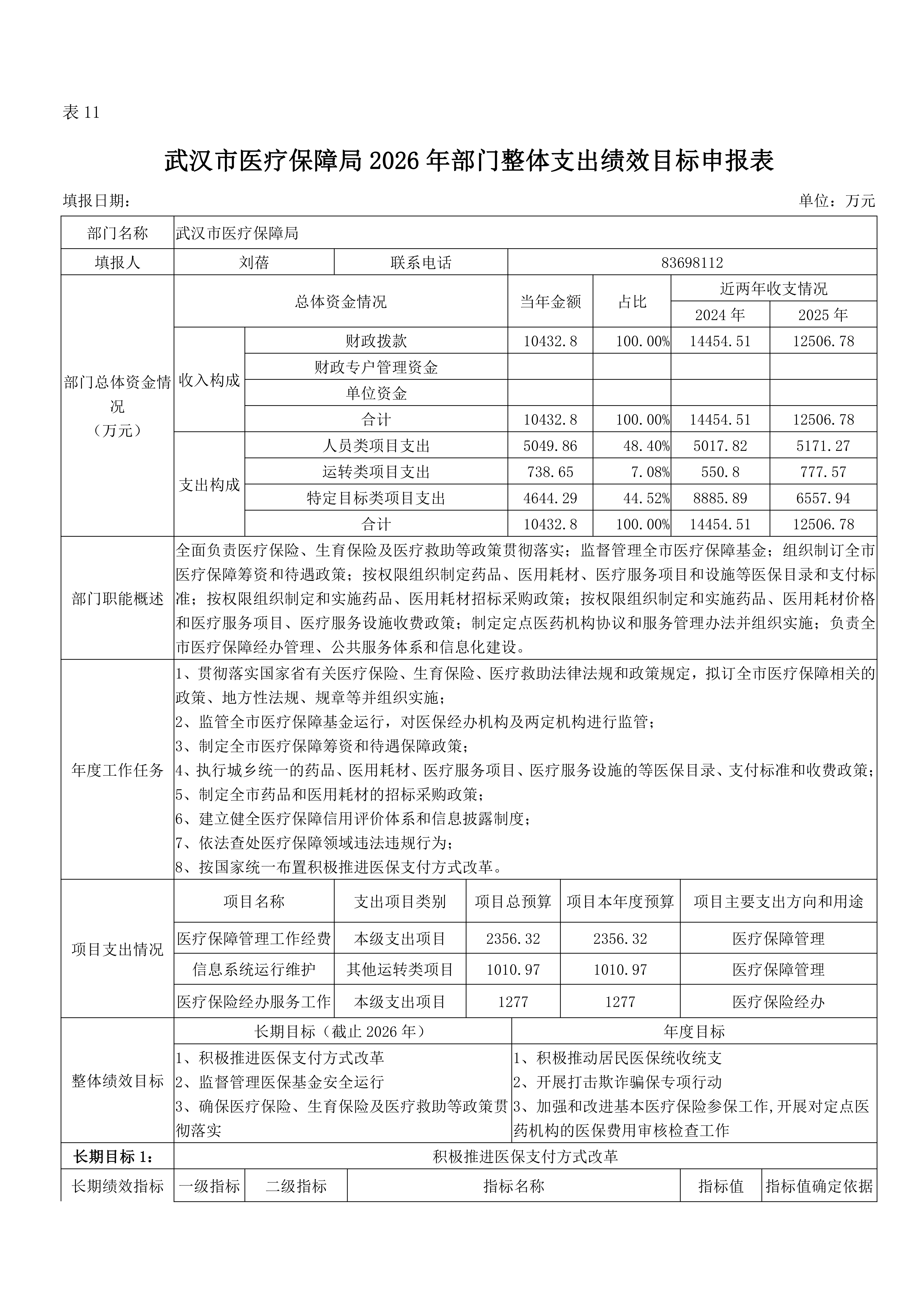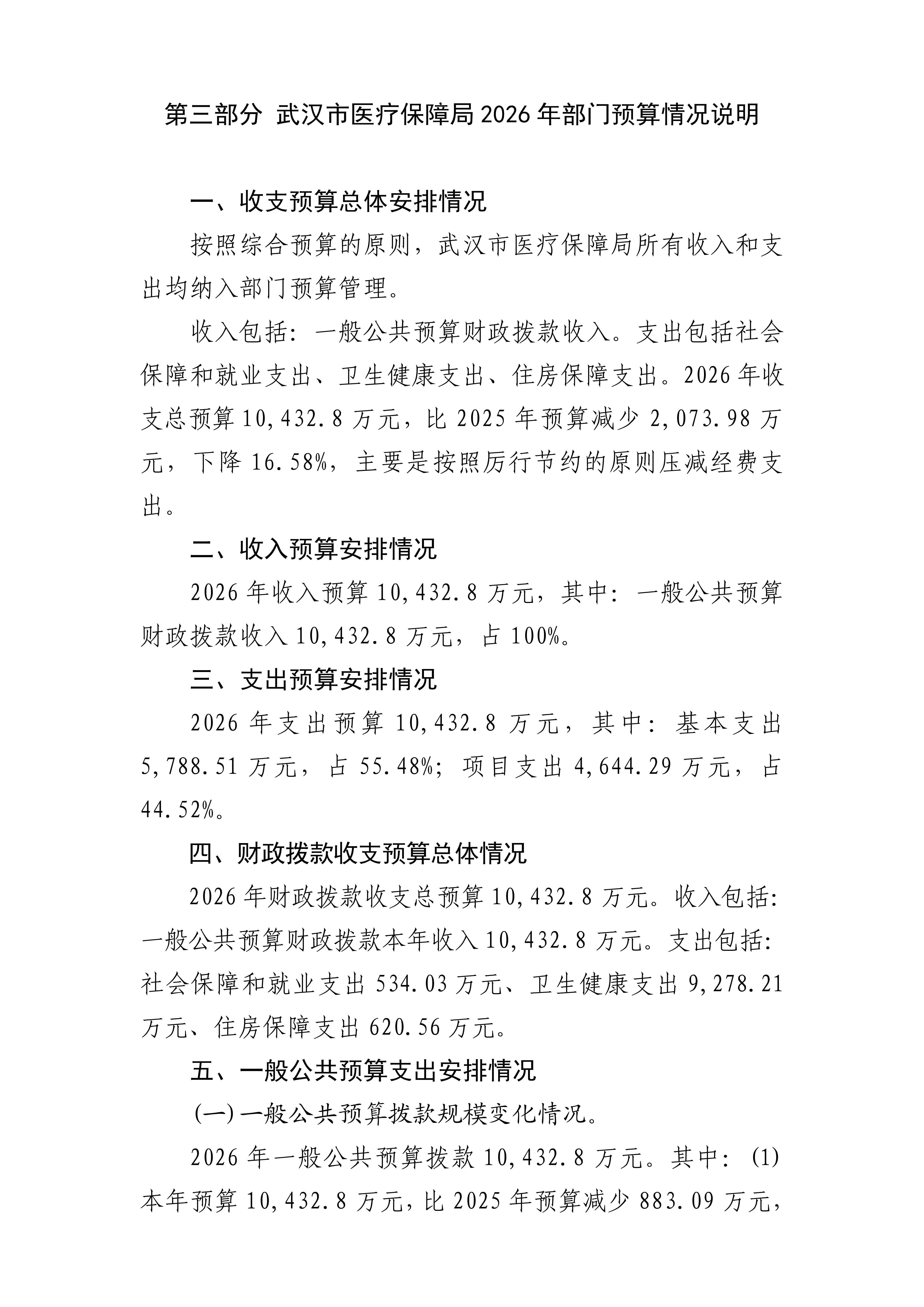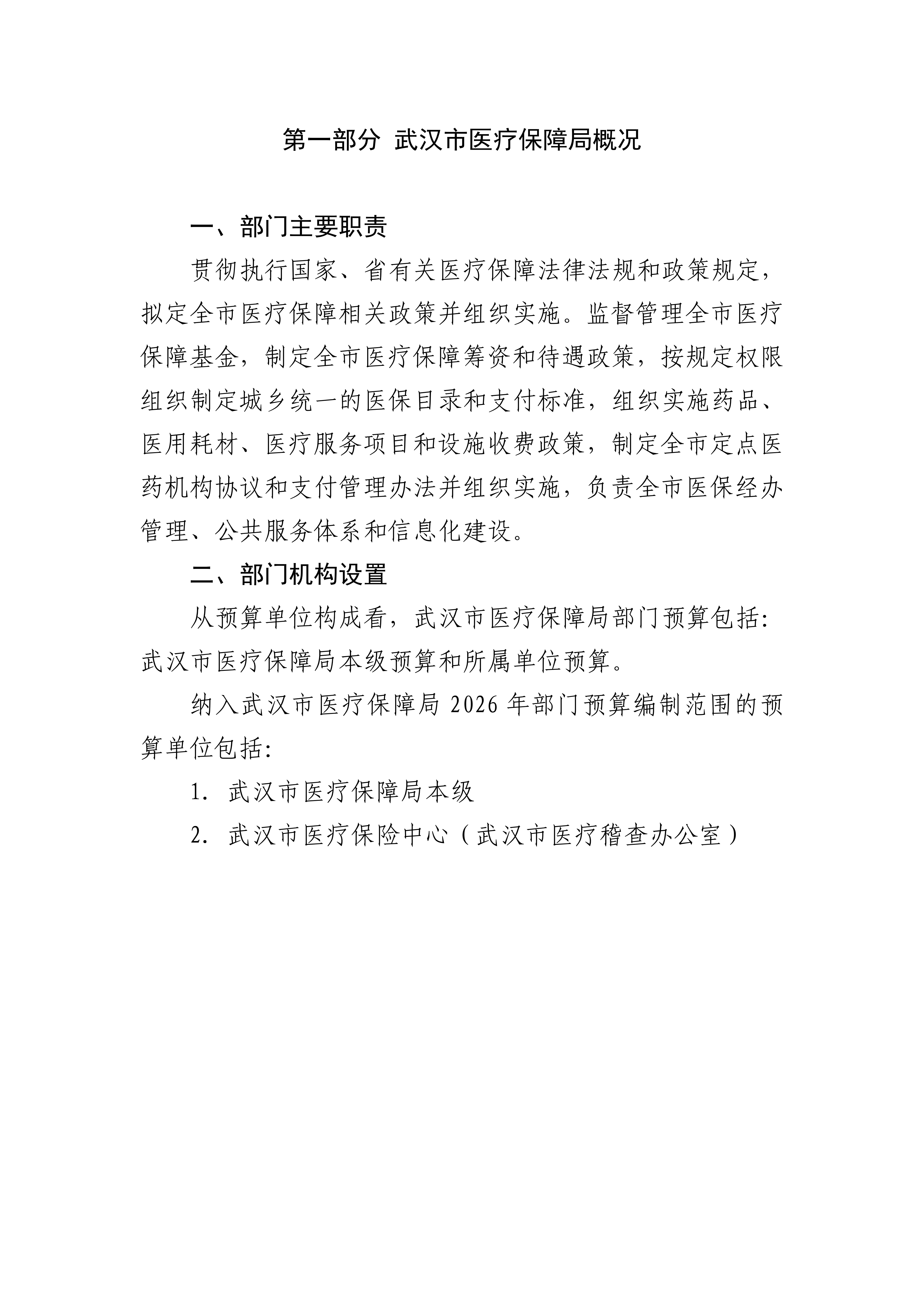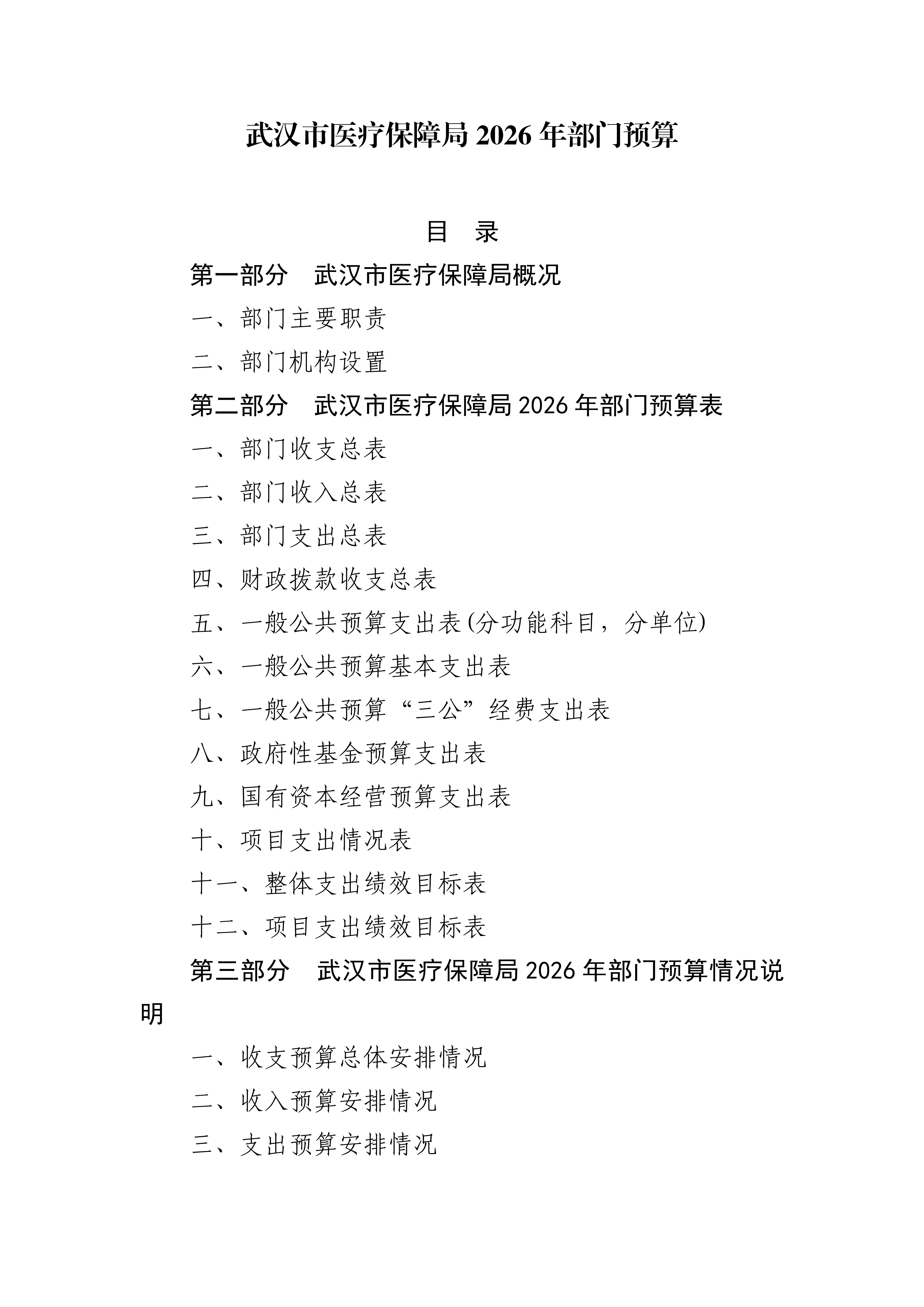 武汉市医疗保障局 2026 年部门预算