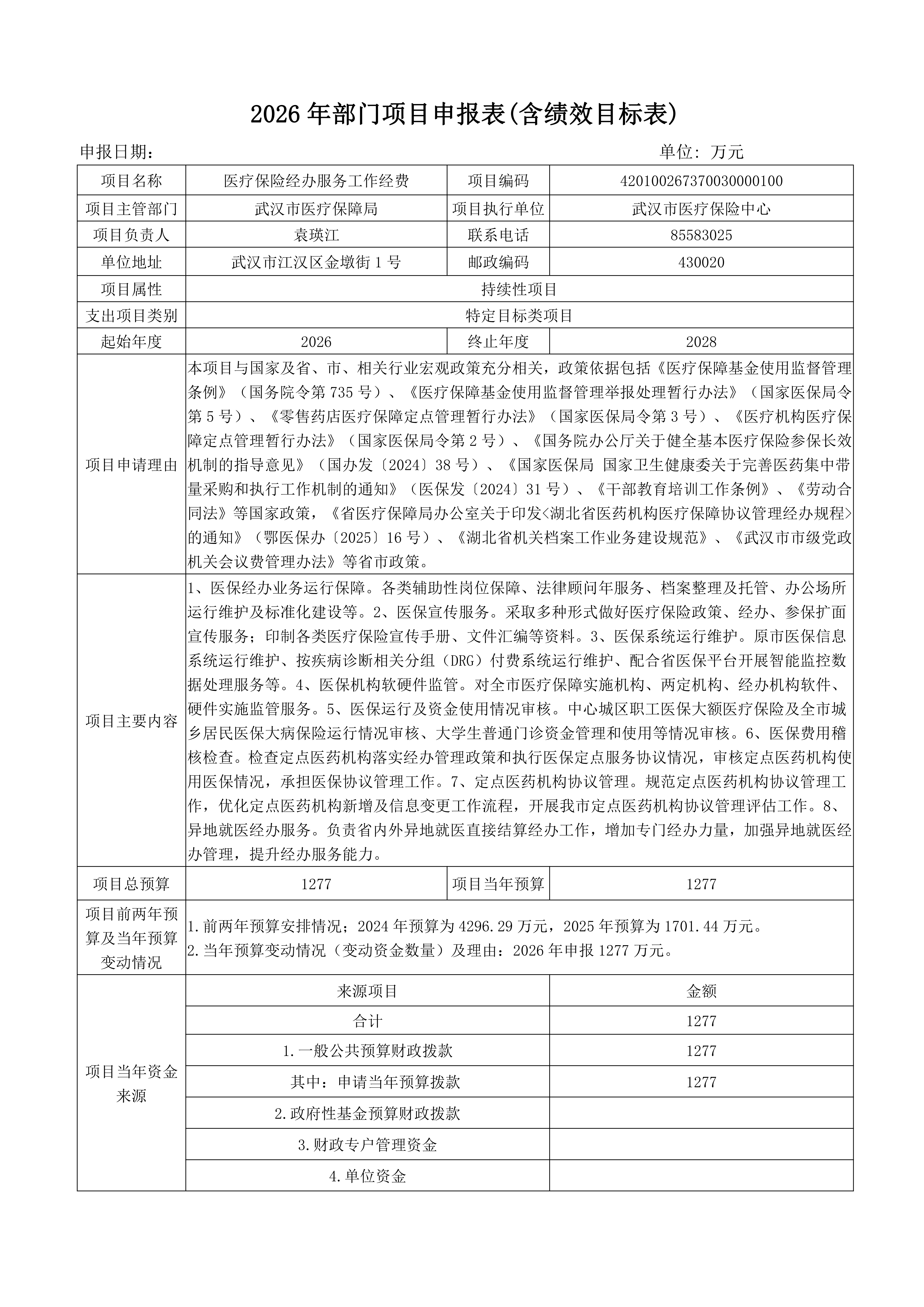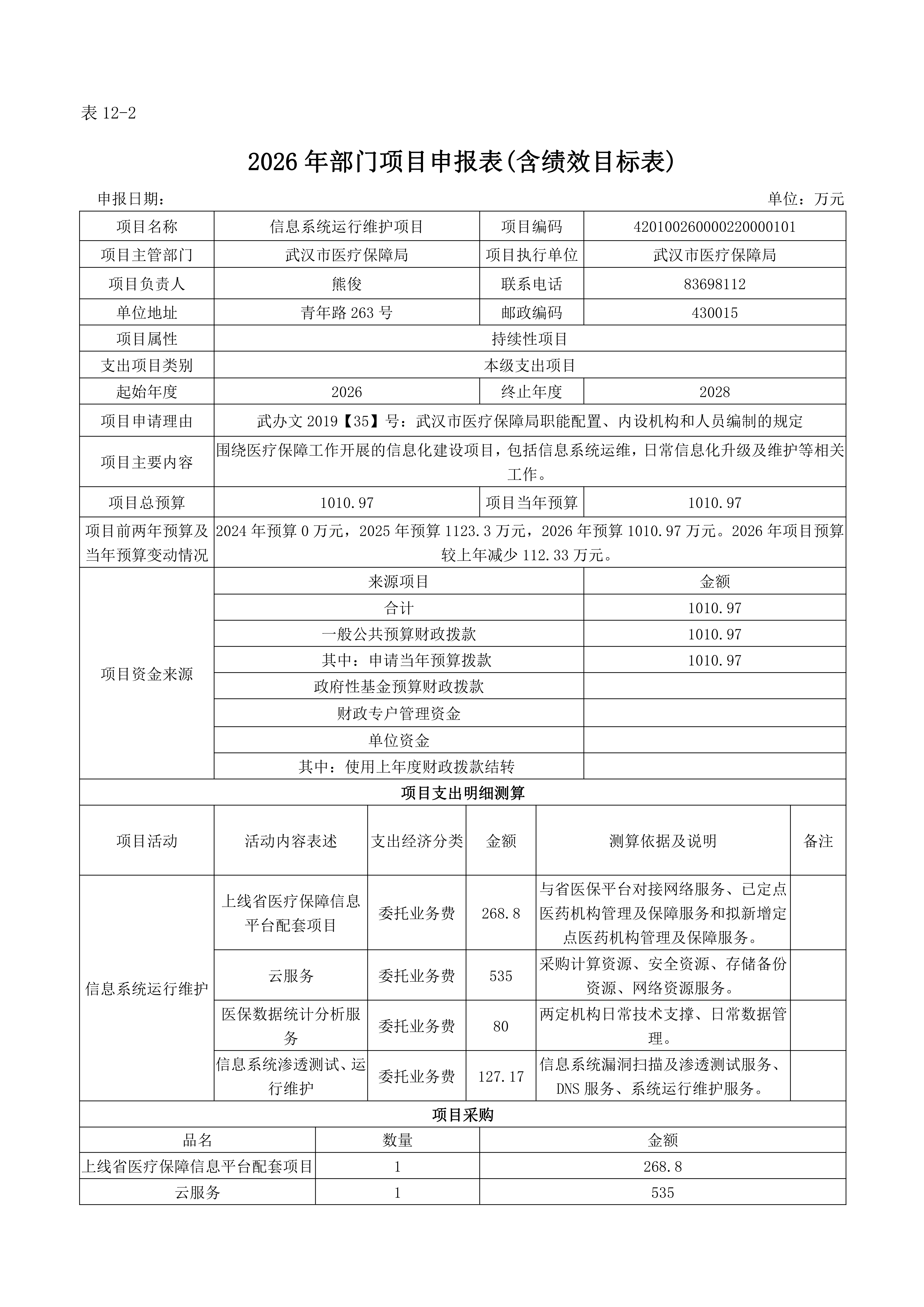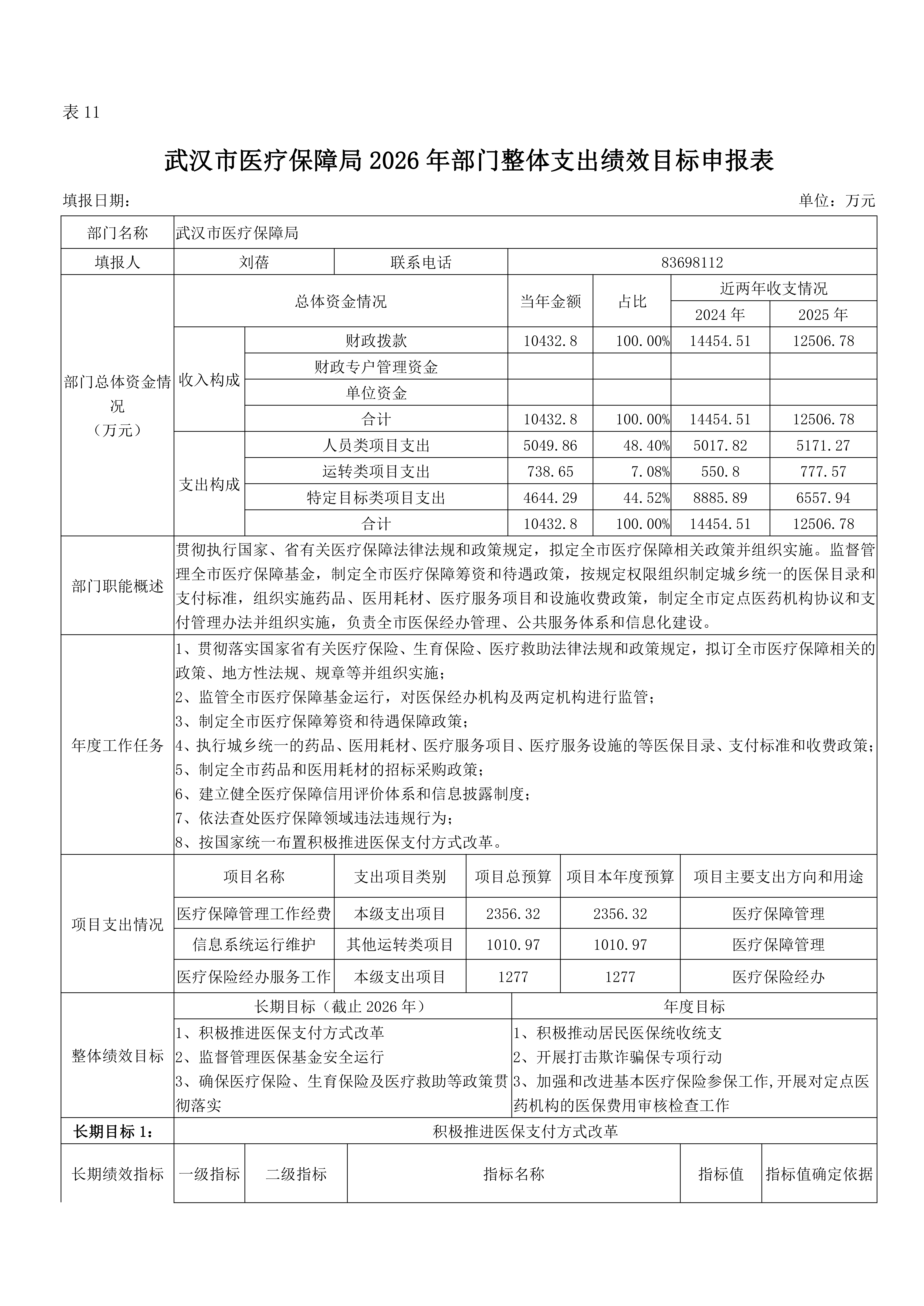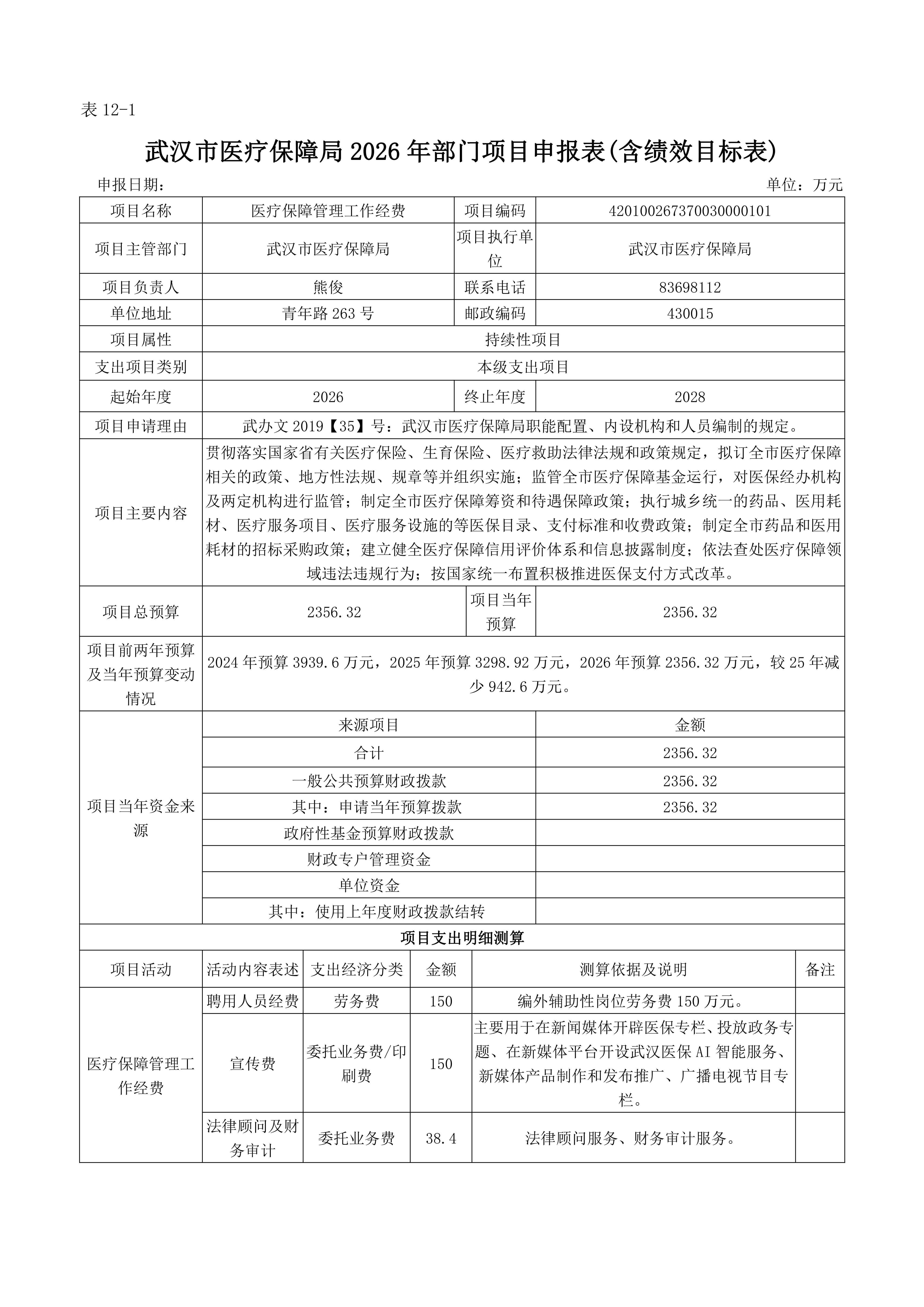 武汉市医疗保障局 2026 年部门预算