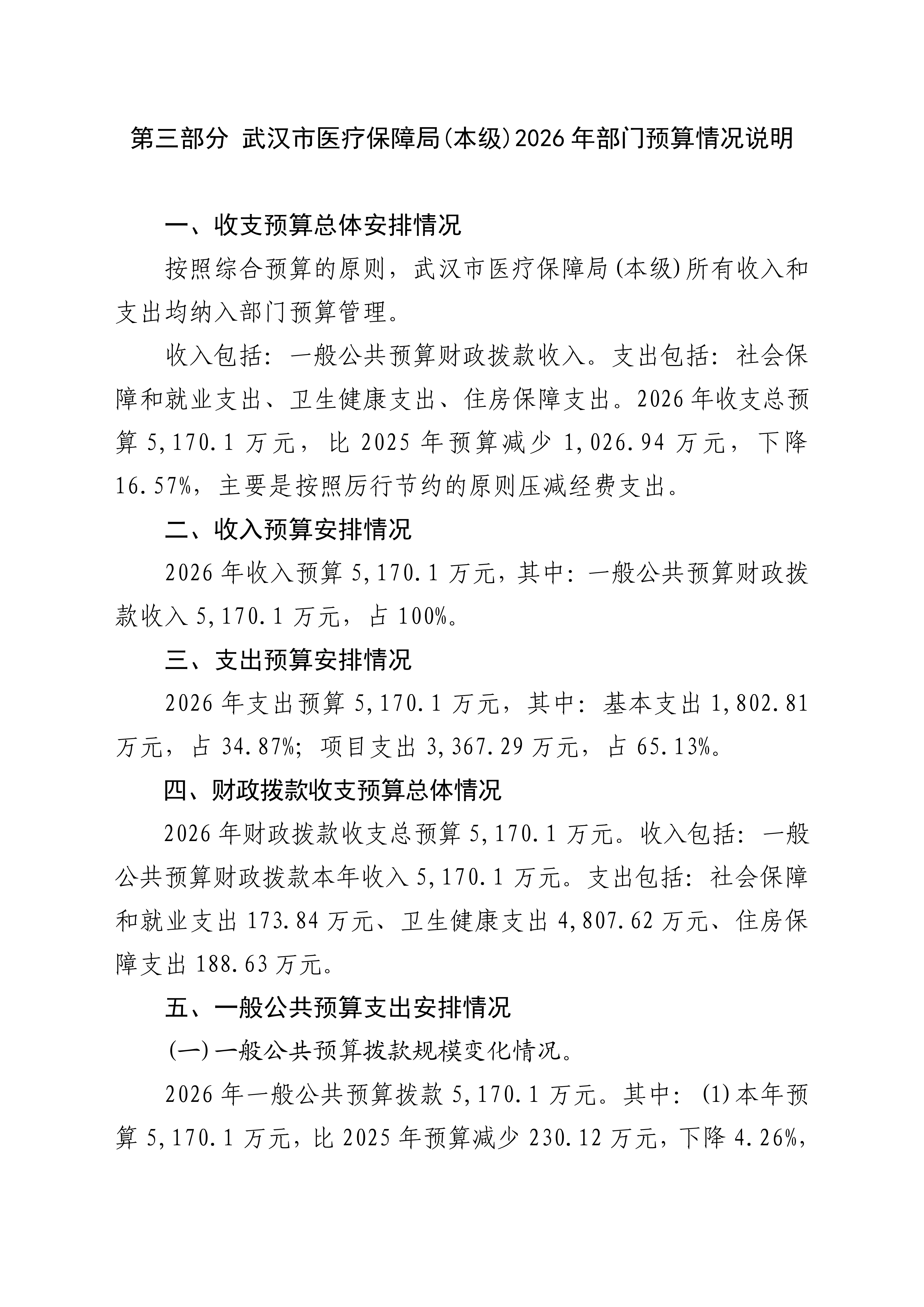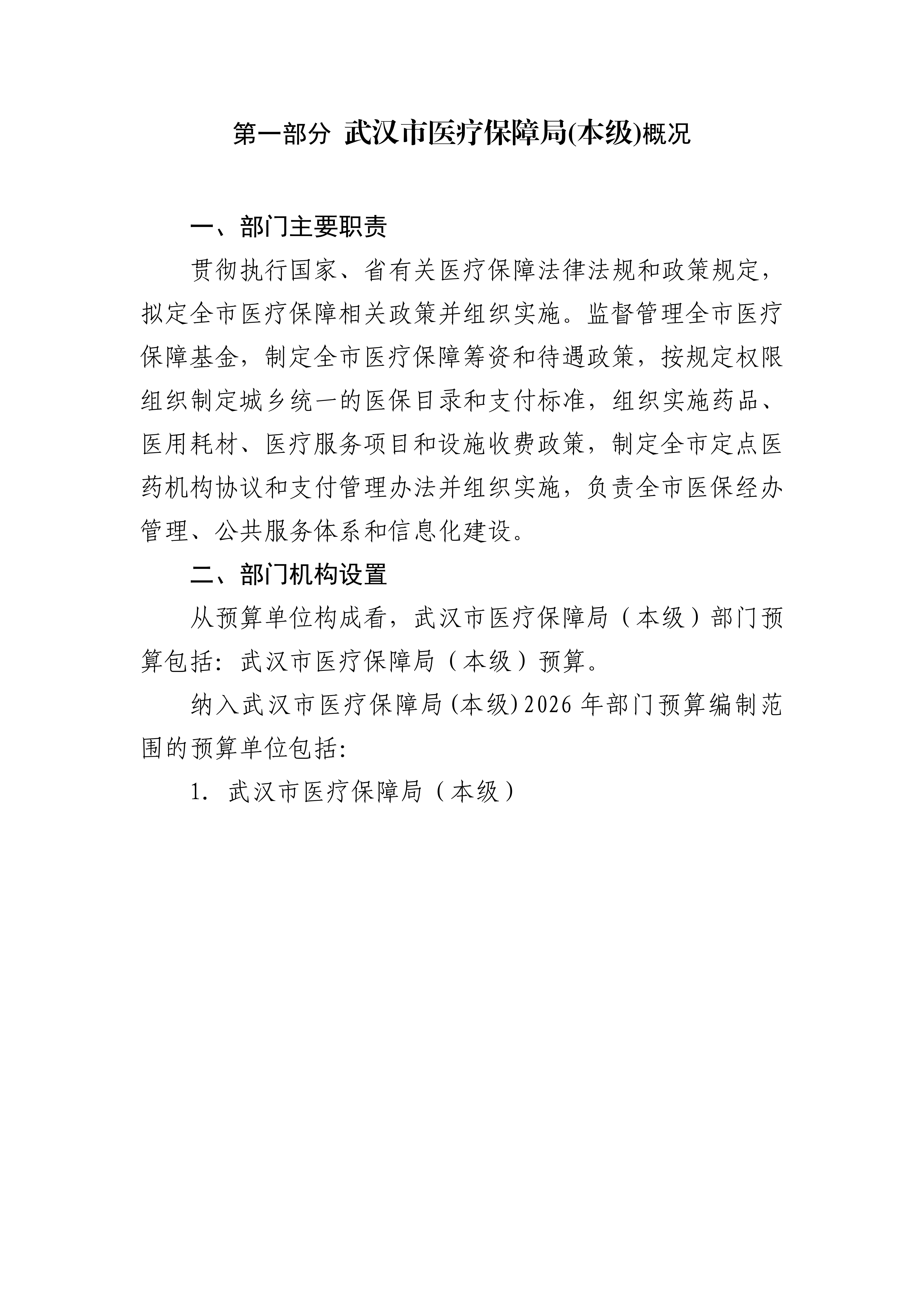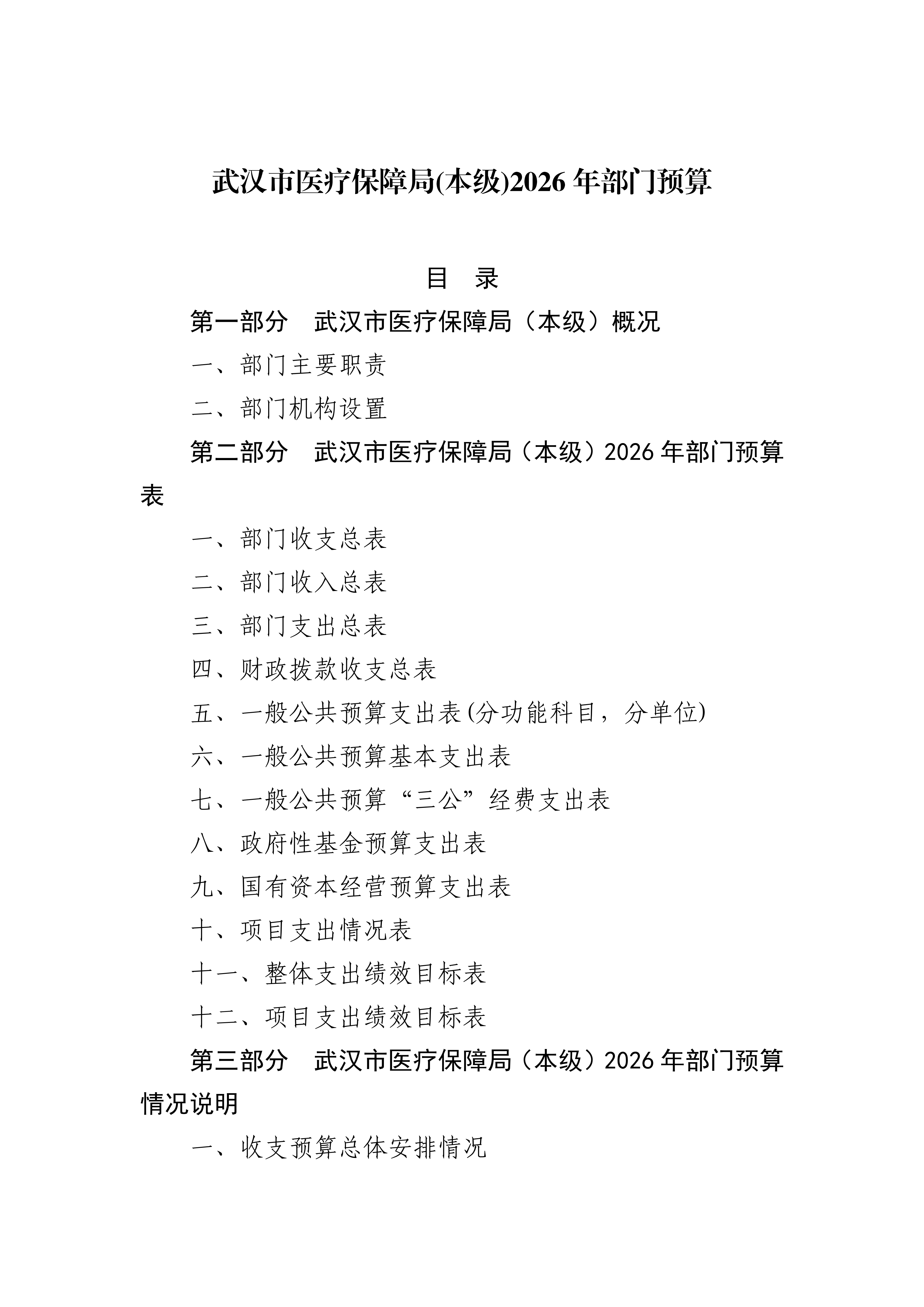 武汉市医疗保障局(本级)2026年部门预算
