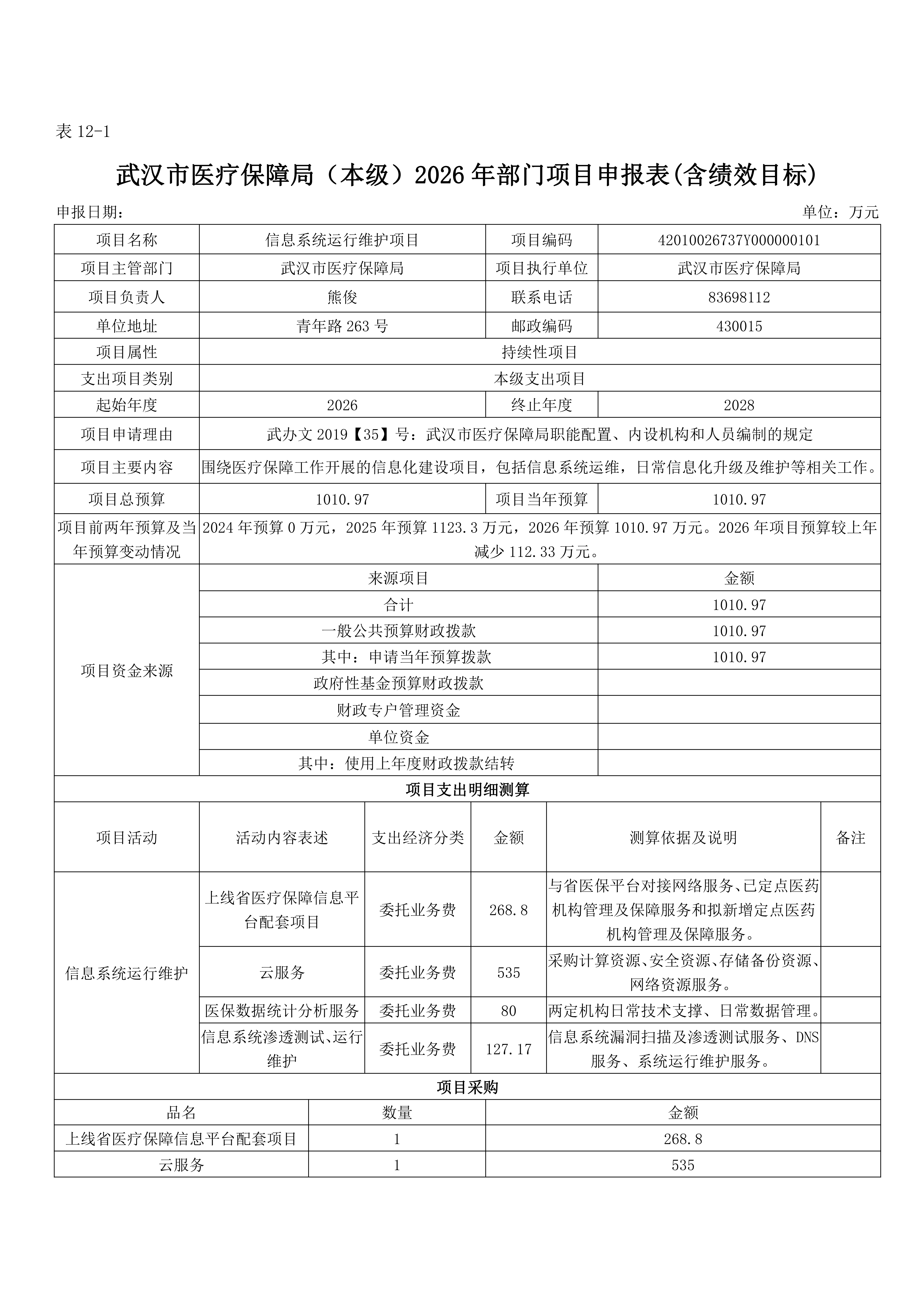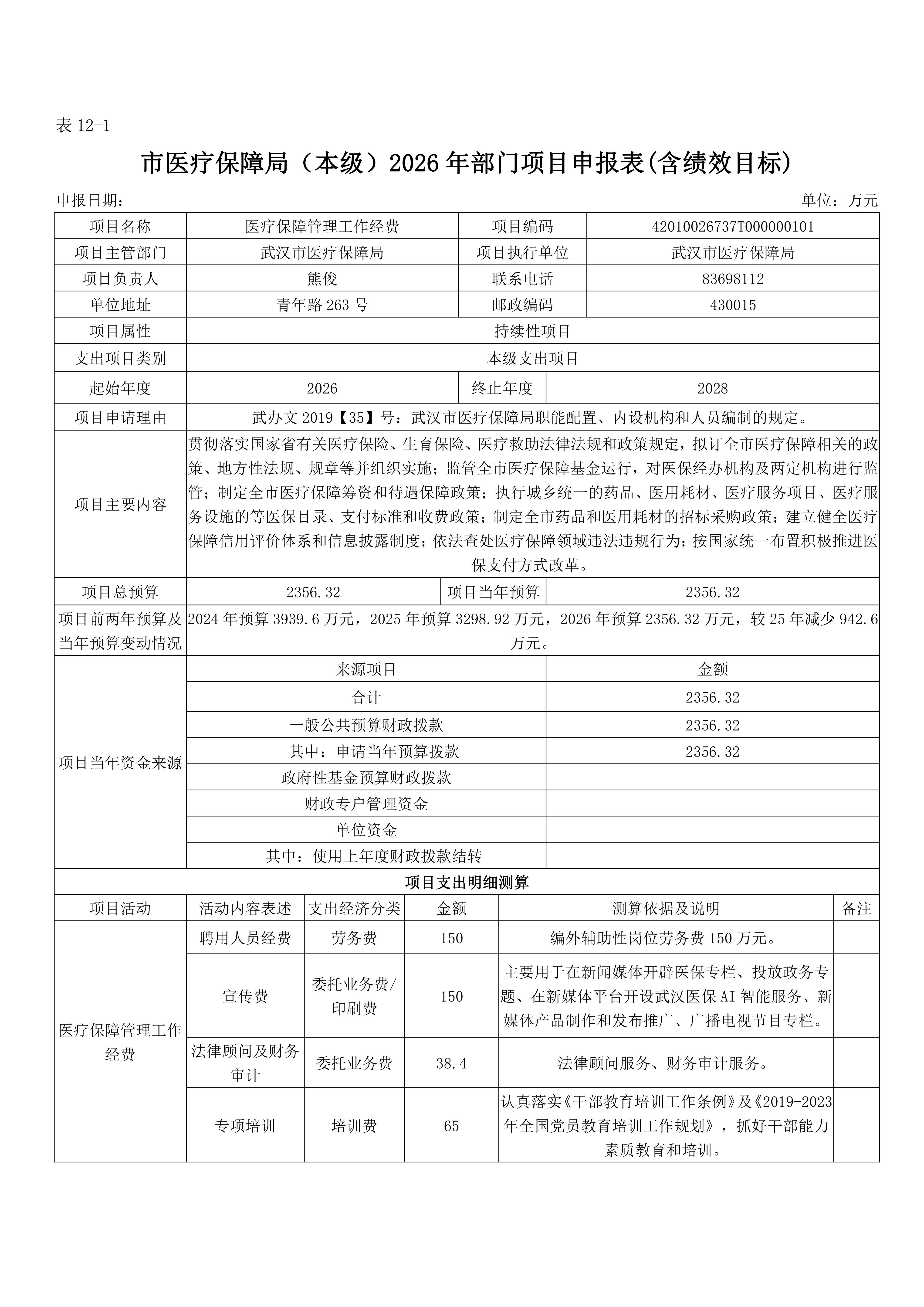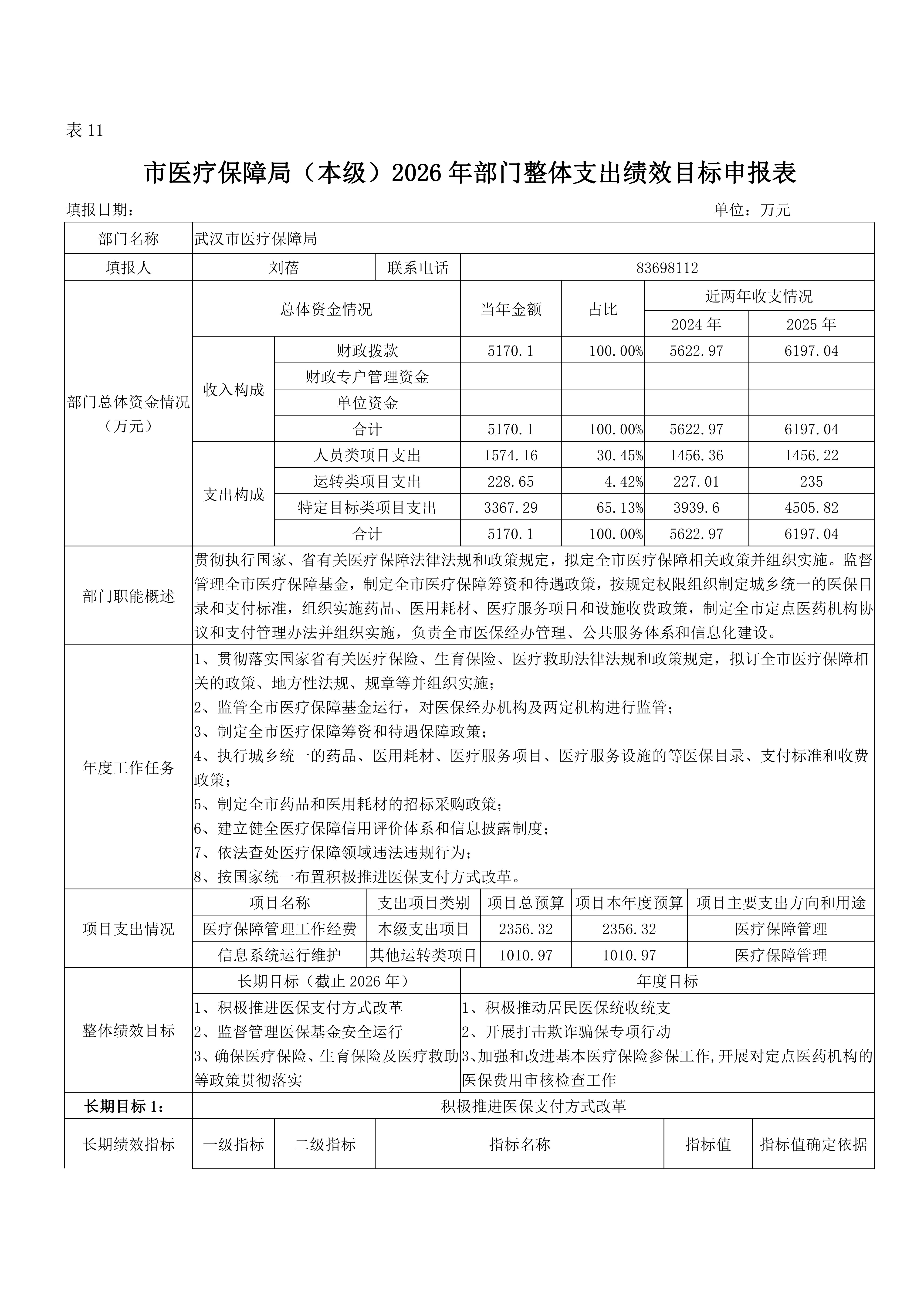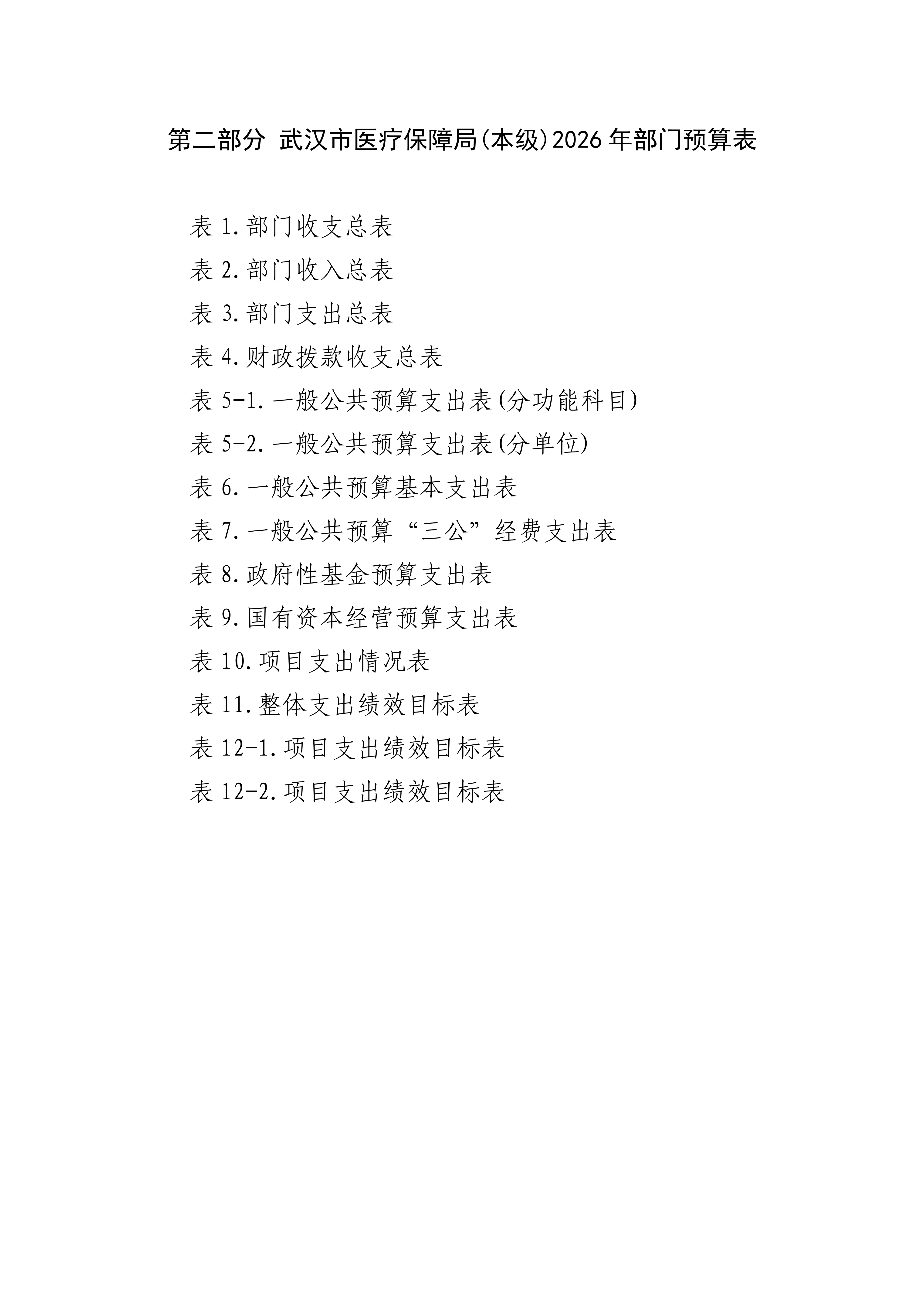 武汉市医疗保障局(本级)2026年部门预算