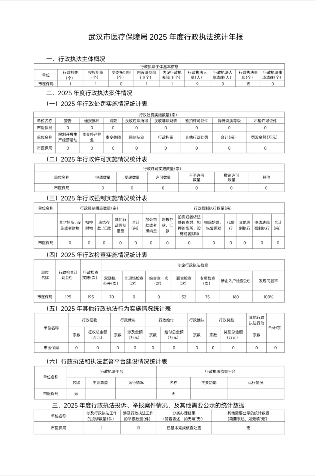 武汉市医疗保障局2025年度行政执法统计年报
