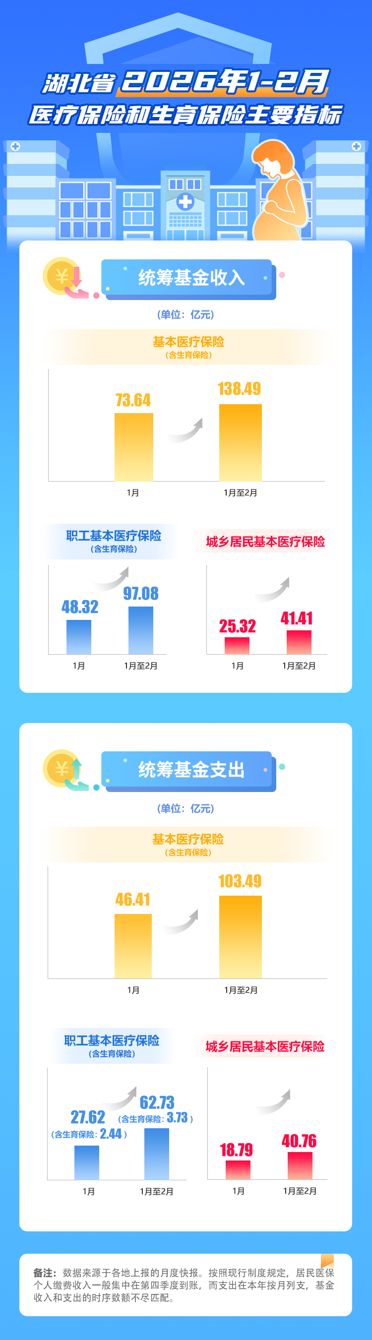 【数据图解】湖北省2026年2月基本医疗保险和生育保险主要指标
