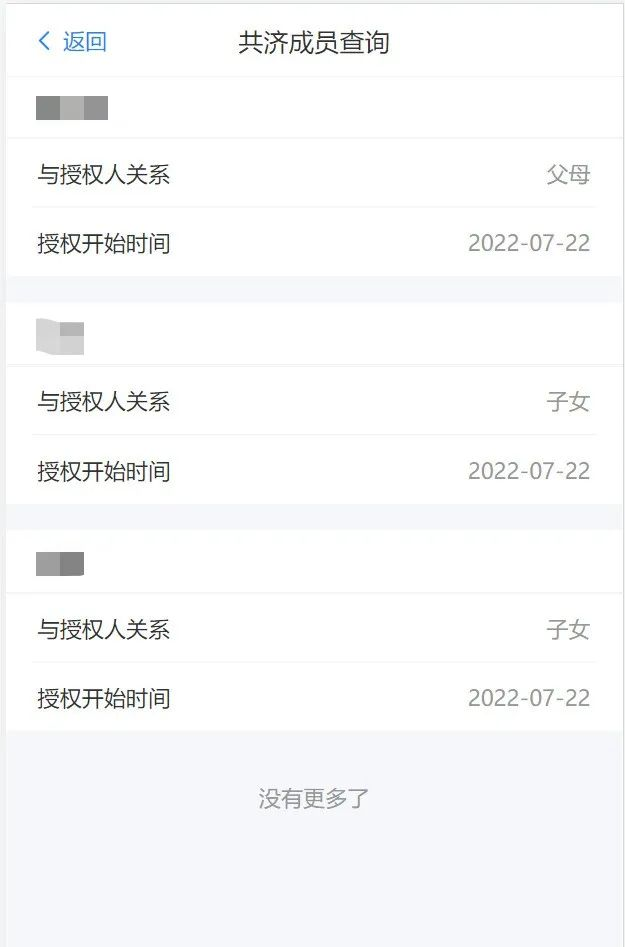 进入“共济成员查询”界面,自动查询出当前绑定的共济成员信息。