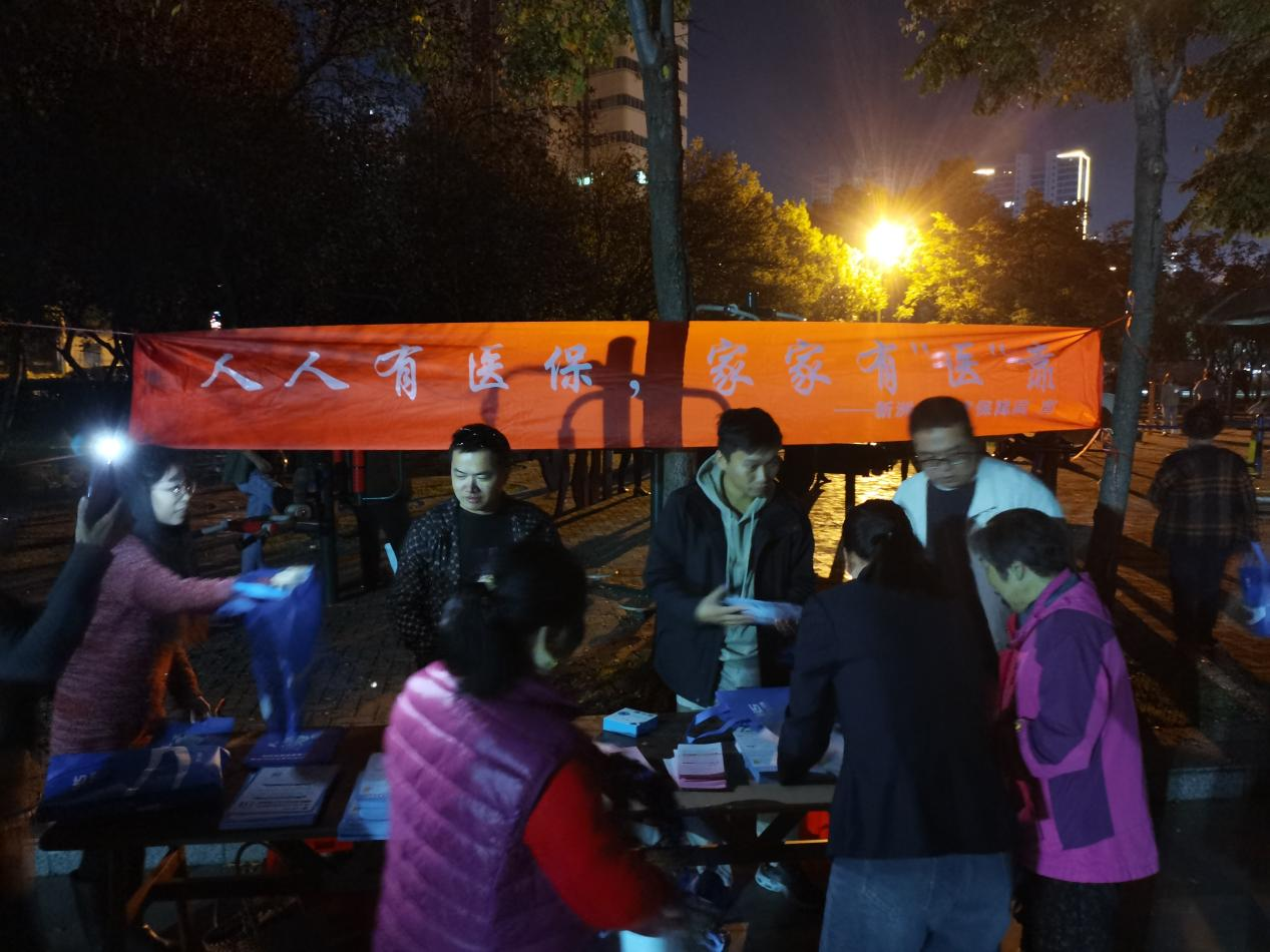 为进一步推动2026年度城乡居民医疗保险征缴工作的开展,提升群众对医保政策的知晓率和参保积极性,深入实施全民参保计划。2025年11月4日晚,新洲区医保局联合邾城街道在新洲区人民广场开展2025年全民参保集中宣传月活动。
